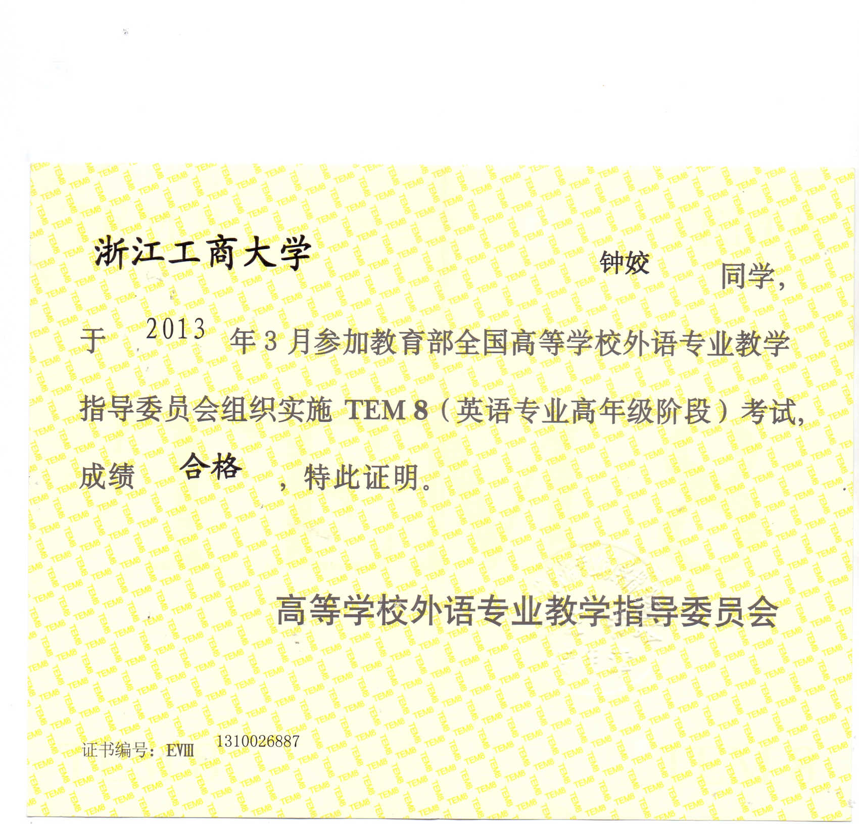 专业八级证书